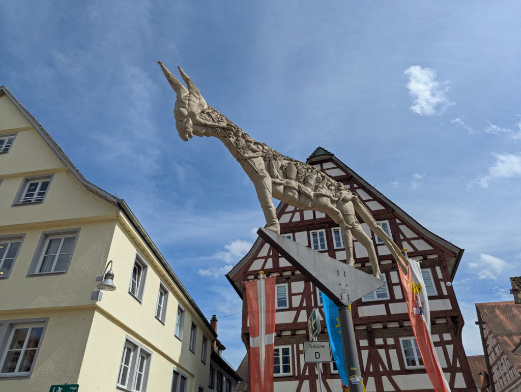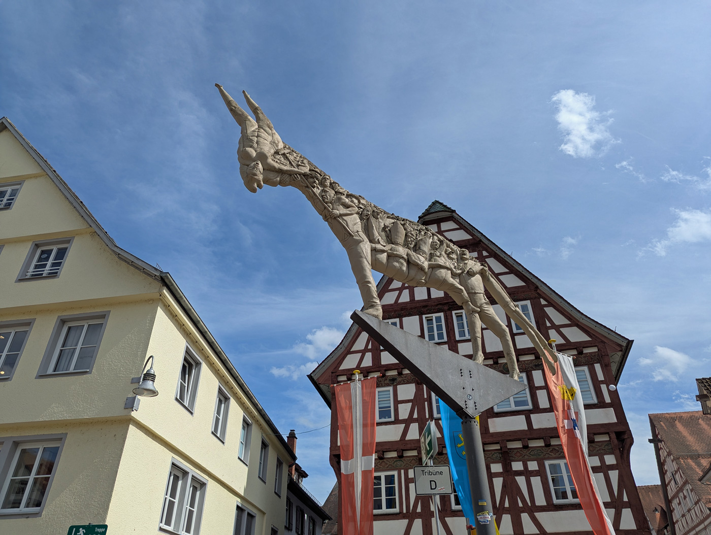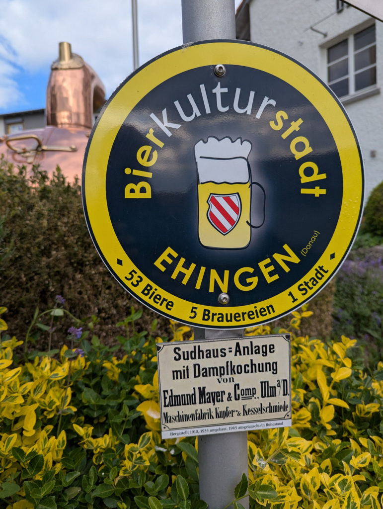 Wir fuhren über Göppingen und Gönningen zurück um Freunde zu besuchen und landeten dann am dritten Tag auf dem Wohnmobilstellplatz in Ehingen an der Donau. Von dort wanderten wir zur Brauerei Berg im Ort mit dem gleichen Namen. Eigentlich wollten wir eine Führung machen, leider war das so spontan nicht möglich. Aber so hatten wir noch Zeit für einen Spaziergang durch die Innenstadt von Ehingen an der Donau. Als wir wieder am Stellplatz angelangt waren, standen dort riesige Anhänger deren Inhalt wir nicht deuten konnten.