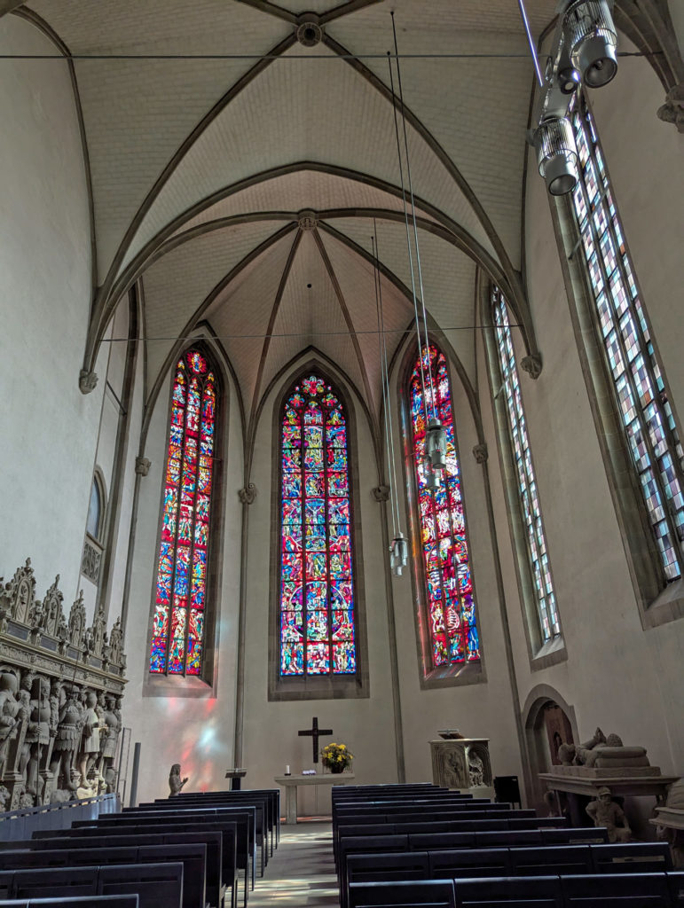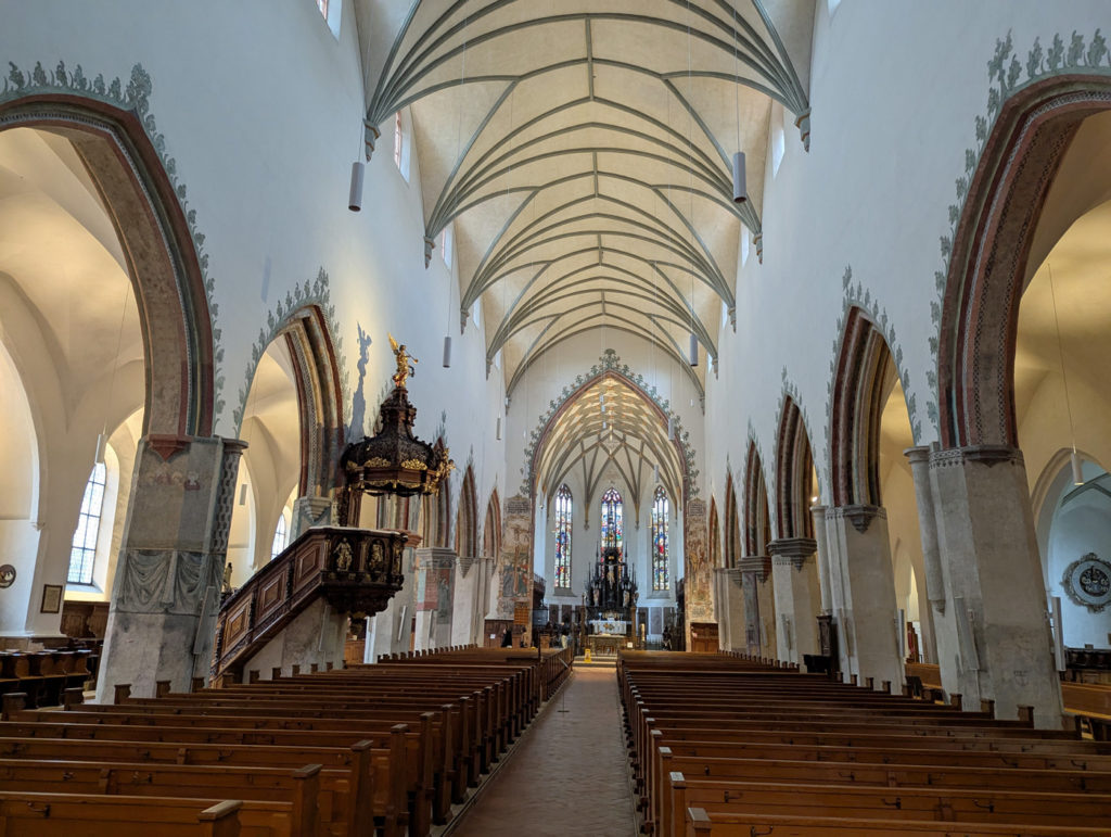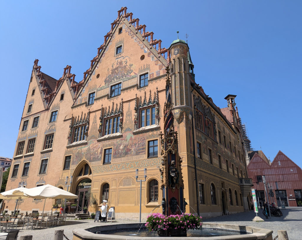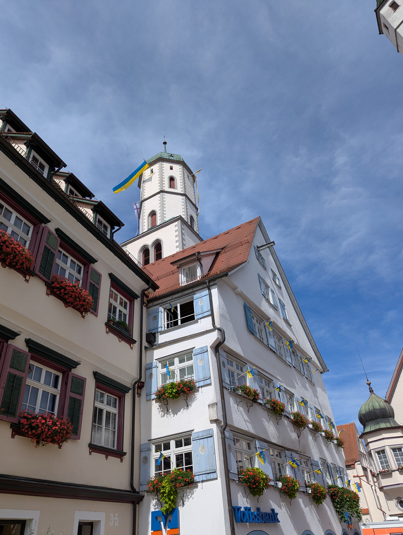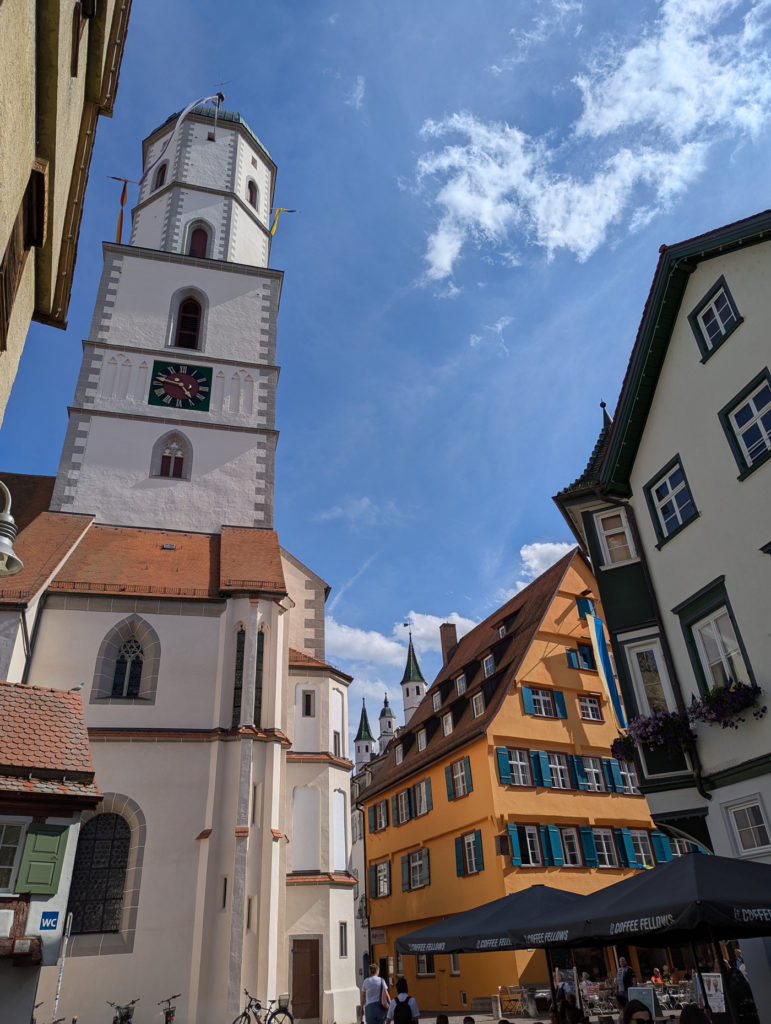 Zwischendrin nahmen wir uns immer mal wieder eine Auszeit für Kunst und Geschichte und davon hat Memmingen viel zu bieten. Ein Ziel war auch die St. Martin Kirche in Memmingen; eine der ältesten Kirchen Oberschwabens und ein Wahrzeichen der Stadt. Ihr Turm ist 65 m hoch und weithin sichtbar.