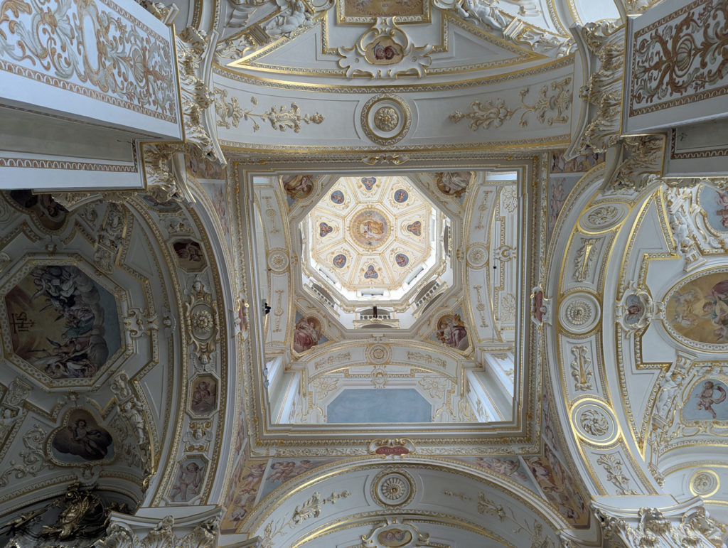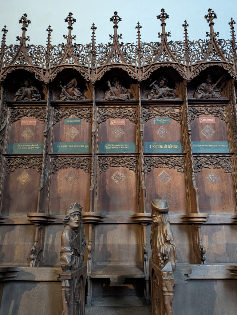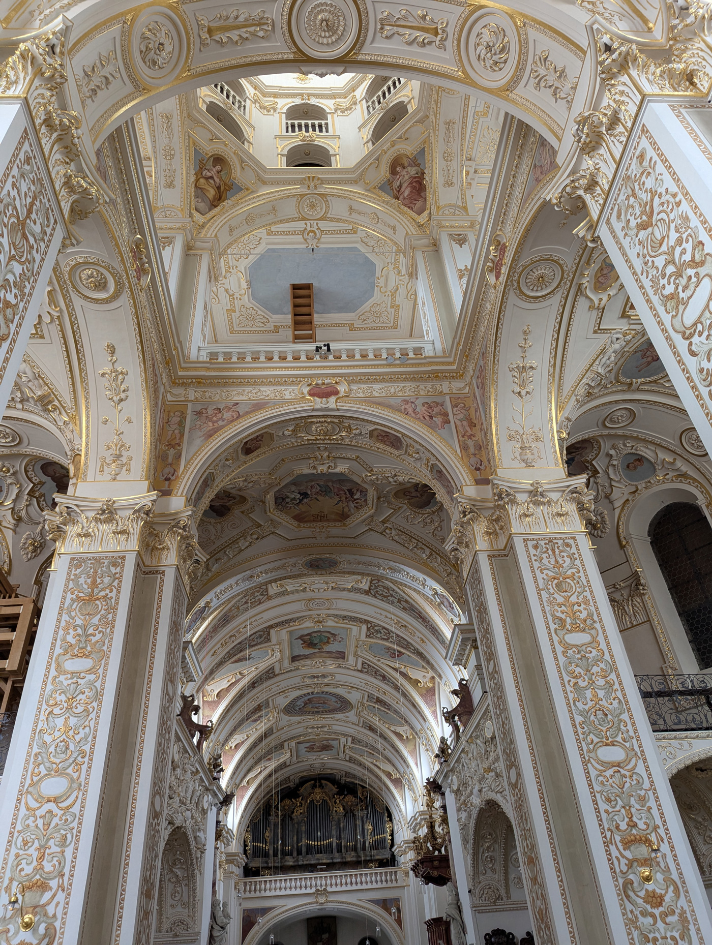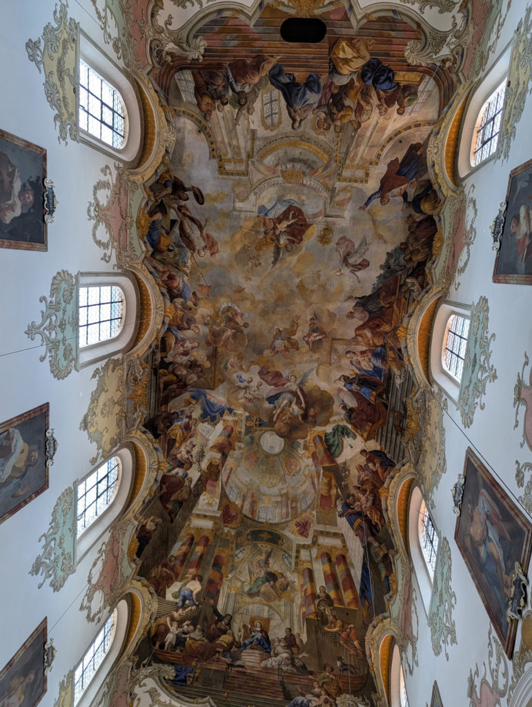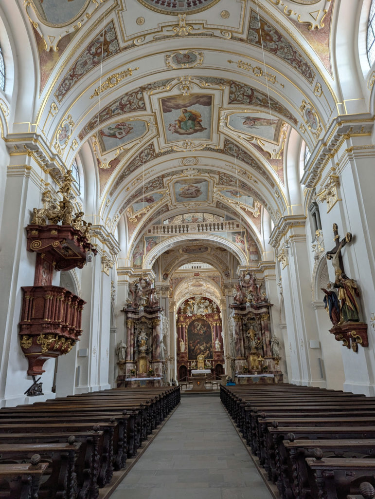 Obwohl wir keine Fans von Barockbauwerken sind, gönnten wir uns am Hochzeitstag 😊 einen Besuch in Ottobeuren und der dortigen Basilika St. Alexander und St. Theodor. Die Basilika ist die Kirche der oberschwäbischen Benediktinerabtei Ottobeuren im Landkreis Unterallgau. Im Gegensatz zu vielen anderen Kirchen ist sie nicht geostet, sondern nach Süden ausgerichtet. Die erste Kirche muss wohl mit der Klostergründung im Jahr 764 erbaut worden sein. Schon 1089 folgte ein Neubau (und fleißig so weiter), aber die heutige Basilika wurde zwischen 1737 und 1766 erbaut. Es leben auch noch eine Handvoll Benediktinermönche im Kloster. Uns erschlägt diese Pracht immer, weshalb wir den romanischen Baustil stets bevorzugen.