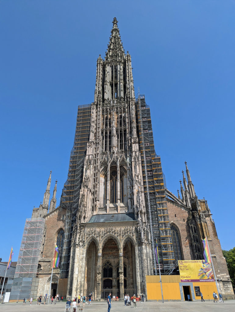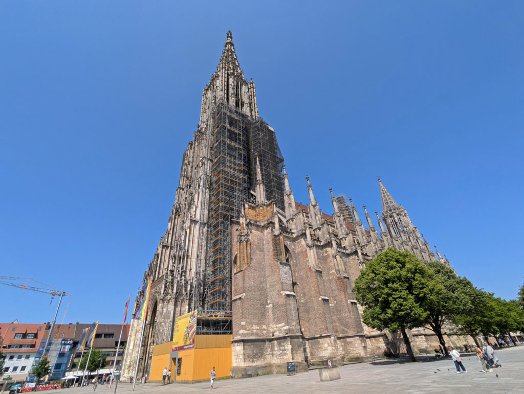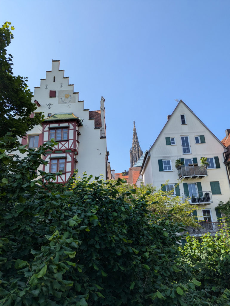 Mit dem Motorrad machten wir einen Ausflug nach Ulm. Natürlich ist Ulm vor allem bekannt für das Ulmer Münster, ein gotisches Bauwerk, welches im 14. Jahrhundert (Grundsteinlegung 1377) von den Bürgern der Stadt finanziert wurde! Mit 161,53 Metern hat es den höchsten Kirchturm der Welt. Ulm wurde 854 erstmals urkundlich erwähnt und so berühmte Persönlichkeiten wie Albert Einstein (1879-1955) und Hildegard Knef (1925-2002) wurden hier geboren und die Geschwister Scholl wuchsen hier auf (ab 1932).