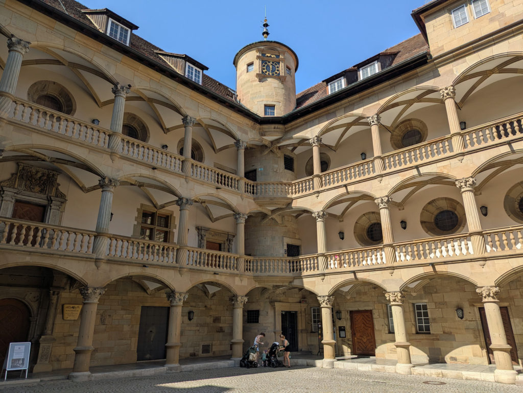 An Muddy gab es leider von der Werkstatt in Stuttgart noch etwas zu tun und so machten wir uns nochmals auf den Weg. So kamen wir wenigstens mal dazu, in den Innenhofs des Alten Schlosses zu schauen und die Stiftskirche zu besuchen.