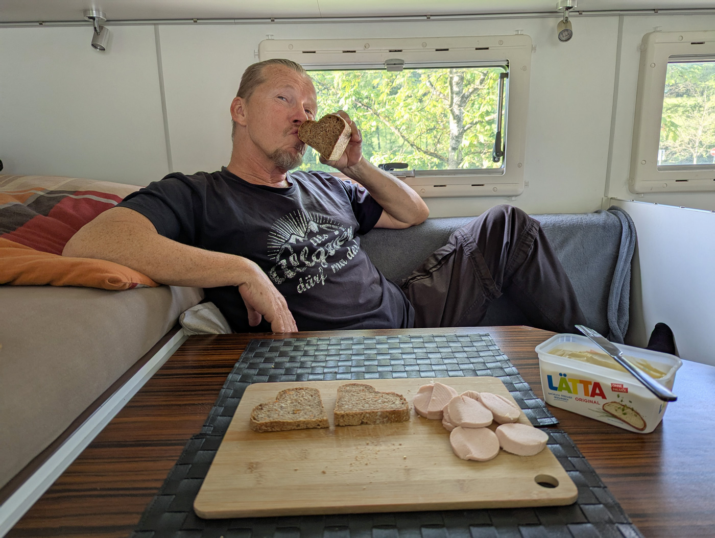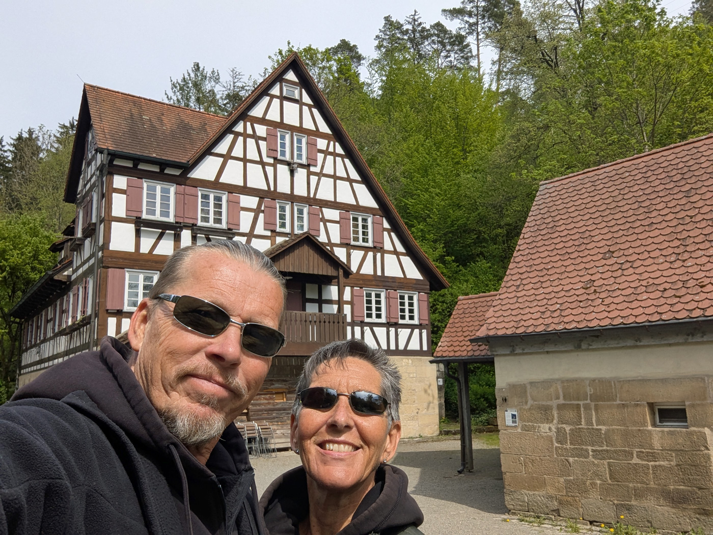 Die Nacht davor verbrachten wir auf dem Parkplatz des schönen Siebenmühlentals und dort an der Eselsmühle. Gegenüber befindet sich die Mäulesmühle. Sie wurde erstmals 1383 unter dem Namen „Rüdiger`s“ erwähnt. Zwischen 1694 und 1764 war das Geschlecht Mayhle auf der Mühle. Die Mühle wurde „Maylesmühle“ genannt, daraus wurde „Mäulesmühle“ abgeleitet. Dort gibt es auch eine Kleinkunst-Bühne. Unser Parkplatz lag an der Eselsmühle, ebenfalls erstmals 1383 erwähnt. Ihre Technik war auf über 5 Stockwerke verteilt! Sie war die letzte Mühle des Tals, in der noch Korn zu Mehl gemahlen wurde. In der dortigen Holzofenbäckerei erstanden wir ein super leckeres „Rübliherz-Brot“ 😊.